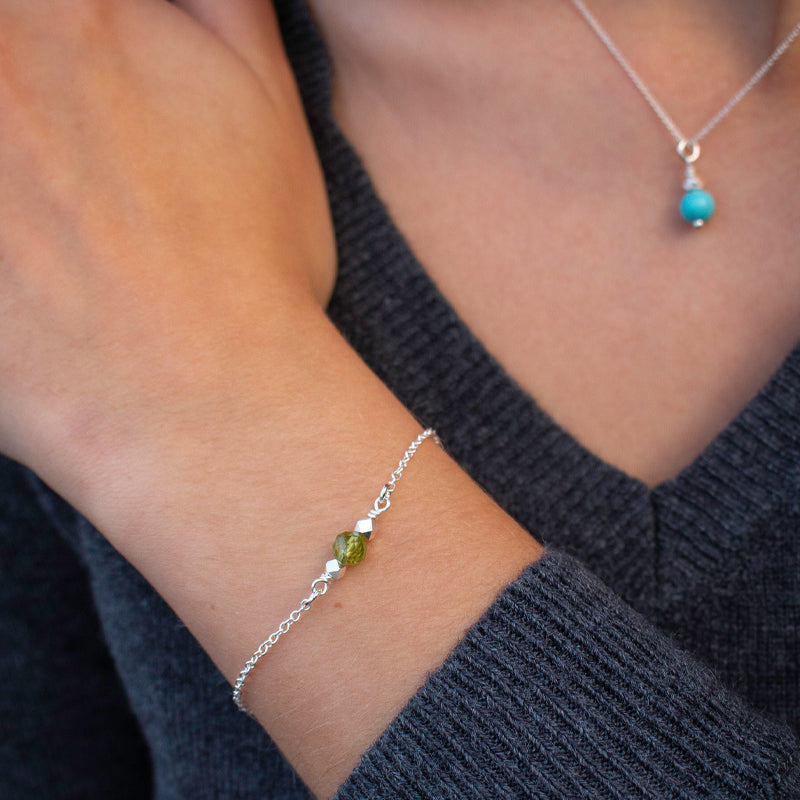 Mit dieser Armkette trägst Du Deinen individuellen Geburtsstein oder den Deines/Deiner Lieblingsmenschen und verleihst somit Deiner persönlichen Verbundenheit Ausdruck.
