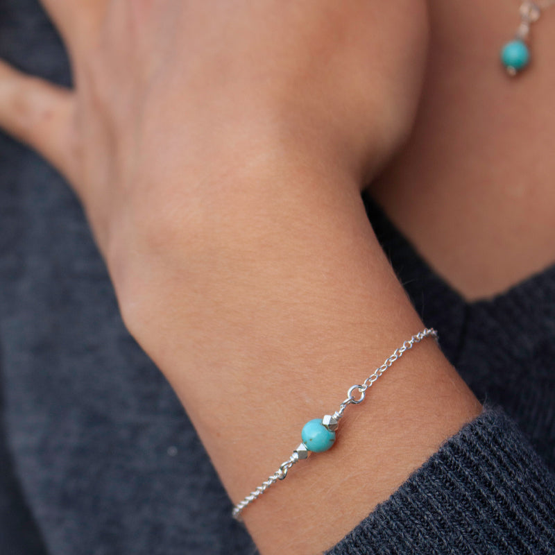 - Perle: glattgeschliffener Türkis, Durchmesser: 6 mm