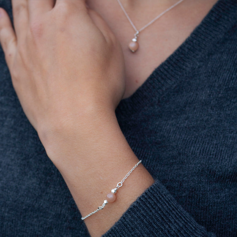 - Perle: glattgeschliffener Mondstein, Durchmesser: 6 mm
